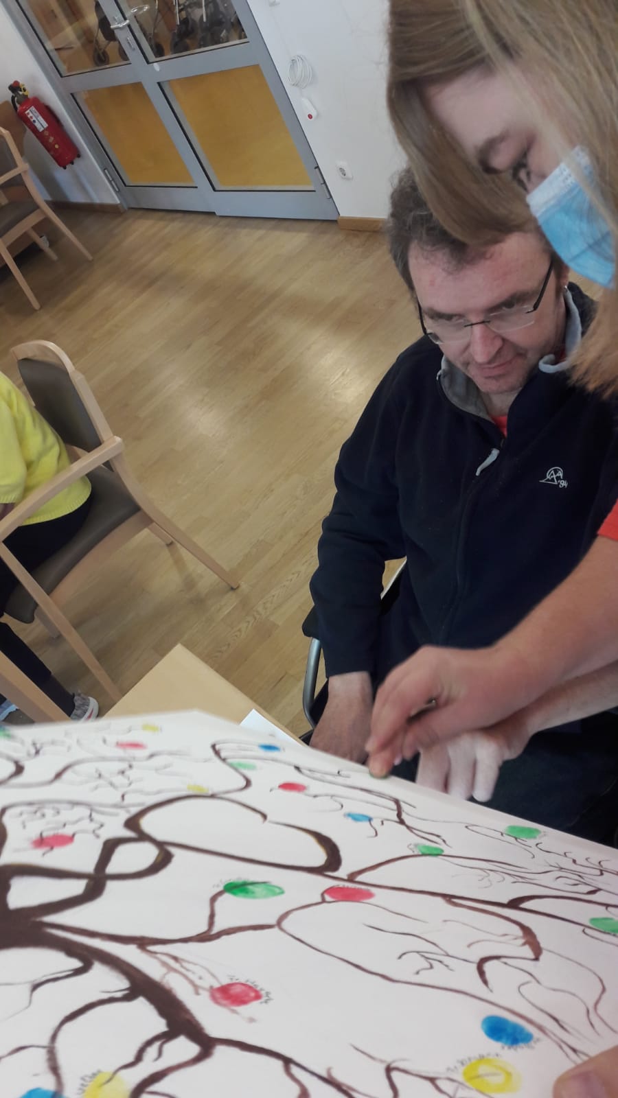 Aachen. Für eine gelungene Überraschung sorgten jetzt die Bewohner in unserem Haus Aurelius. Zur Hochzeit unserer Einrichtungsleitung Venice Mayeres haben sie eine Leinwand mit Fingerabdrücken gestaltet. Im geschmückten Büro wurde Venice dann damit überrascht. Die allerbesten Glückwünsche auch von uns!