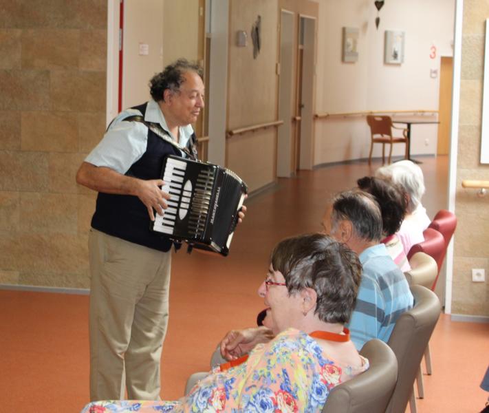 Bedburg. Besuch von Herrn Balogh und seiner Frau in der Pro8 Bedburg: Regelmäßig sorgen die beiden mit ihrer Wiener Kaffeehaus-Musik für tolle Stimmung unter den Bewohnern.