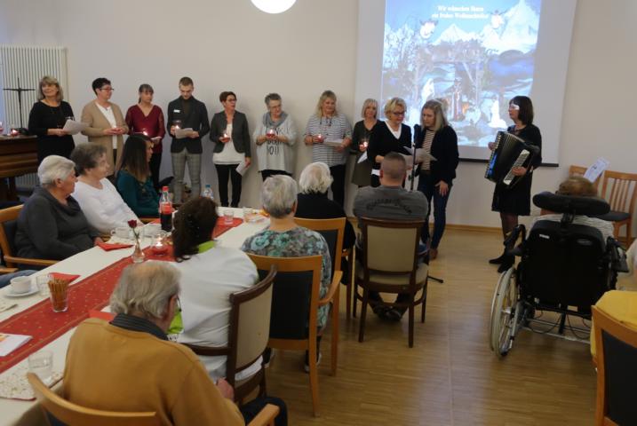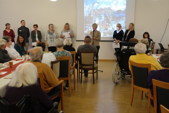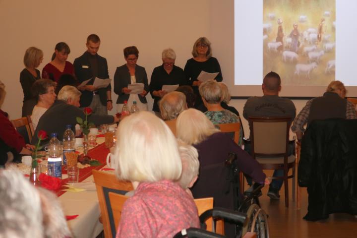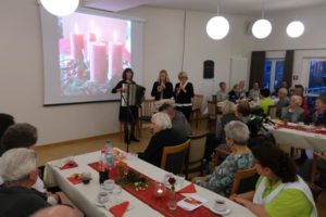 Die Gesangs-, Gedicht- und Geschichtsbeiträge von Rosel Cleef-Stassen und ihrem Team sorgten für gute Stimmung. Im Anschluss an die Ehrung der ehrenamtlichen Mitarbeiter des Hauses hatte das Hauswirtschaftsteam für alle Gäste Sauerbraten, Rotkohl und Knödel vorbereitet.